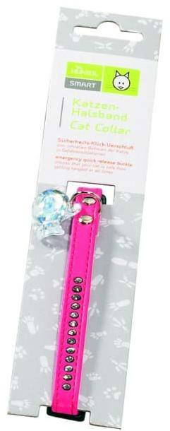 Ошейник из искусственной кожи, украшенный стразами. - Безопасная застежка (если на прогулке кошка зацепится за что-то, то ошейник расстегнется, что не приведет к удушению животного). - Хромированная фурнитура является залогом долгого использования ошейника. - Пластиковый бегунок поможет отрегулировать и зафиксировать ошейник по размеру. - Адресная табличка и небольшой колокольчик, позвякивание которого обязательно оповестит владельца о местонахождении питомца.