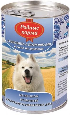 Консервы Родные Корма для собак, говядина с потрошками в желе по-купечески