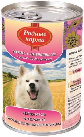 Консервы Родные Корма для собак, птица с потрошками в желе по-московски
