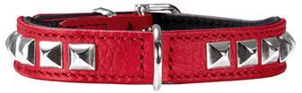 Ошейник для собак мелких пород. Двуслойный с подвернутыми краями. Натуральная телячья кожа. Украшен хромированными заклепками. Обхват шеи 20 - 24 см, ширина - 1,6 см. Цвет: красный. Отлично подходит собакам породы Доберман Пинчер, Мопс.