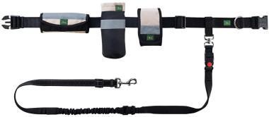Сумка-ремень в спортивном стиле в регулируемым размером до 120 см. Регулируемый и светоотражающий поводок с амортизатором. Безопасная застежка для того, чтобы пристегнуть или отстегнуть ремень. С помощью застежки ремень трансформируется с поводок с петлей для руки. В комплекте с ремнем 3 отдельных кармана: для смартфона, лакомств или других аксессуаров и бутылки 0,5 л для воды. Все отделения съемные и светоотражающие.
